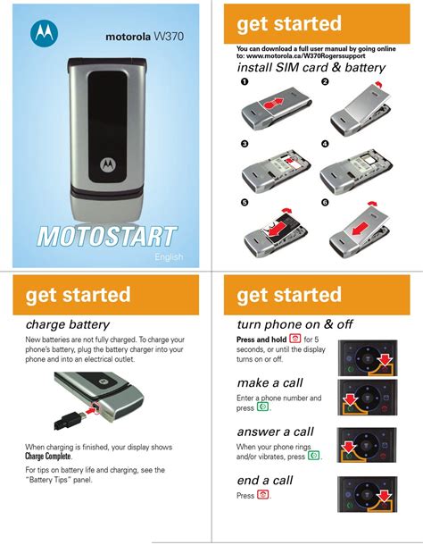 Motorola W370 Getting Started Guide. Owner's manual, user manual, service manual, get started motorola w370 user manual (80 pages). Download motorola w370 user manual / user guide in pdf for free.